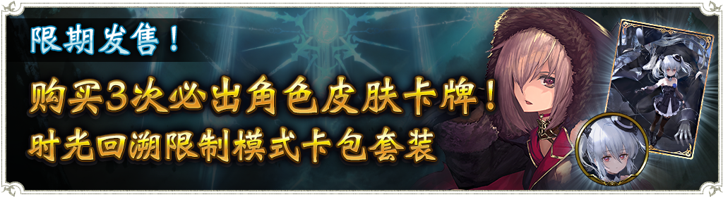 “购买3套必出角色皮肤!时光回溯限制模式卡包套装”