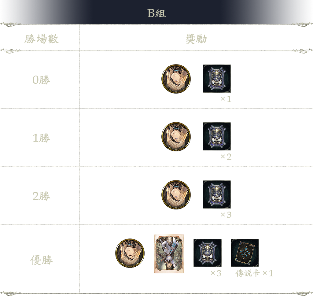 3勝:溯時指定系列卡包兌換券 3張、傳說卡 1張(隨機)、《倒吊人》‧羅弗拉德(進化後)(卡背)