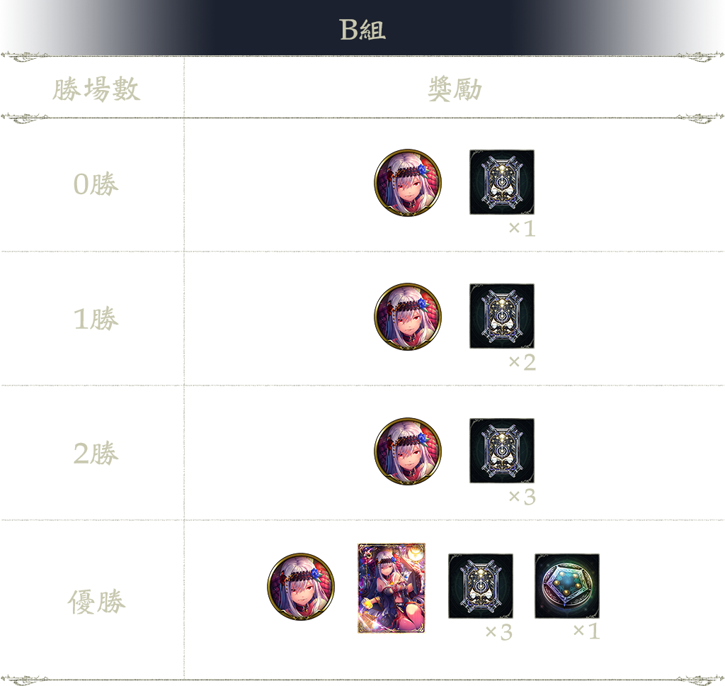 B組:每日最多可挑戰5次/於1次內獲得3勝以上即可晉級至決賽