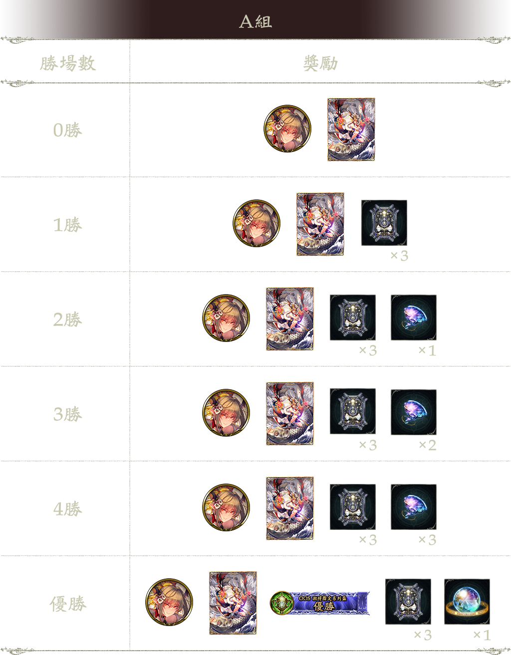 3勝:溯時指定系列卡包兌換券 3張、次元石的碎片 2個