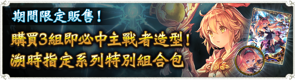 「購買3組即必中主戰者造型!溯時指定系列特別組合包」