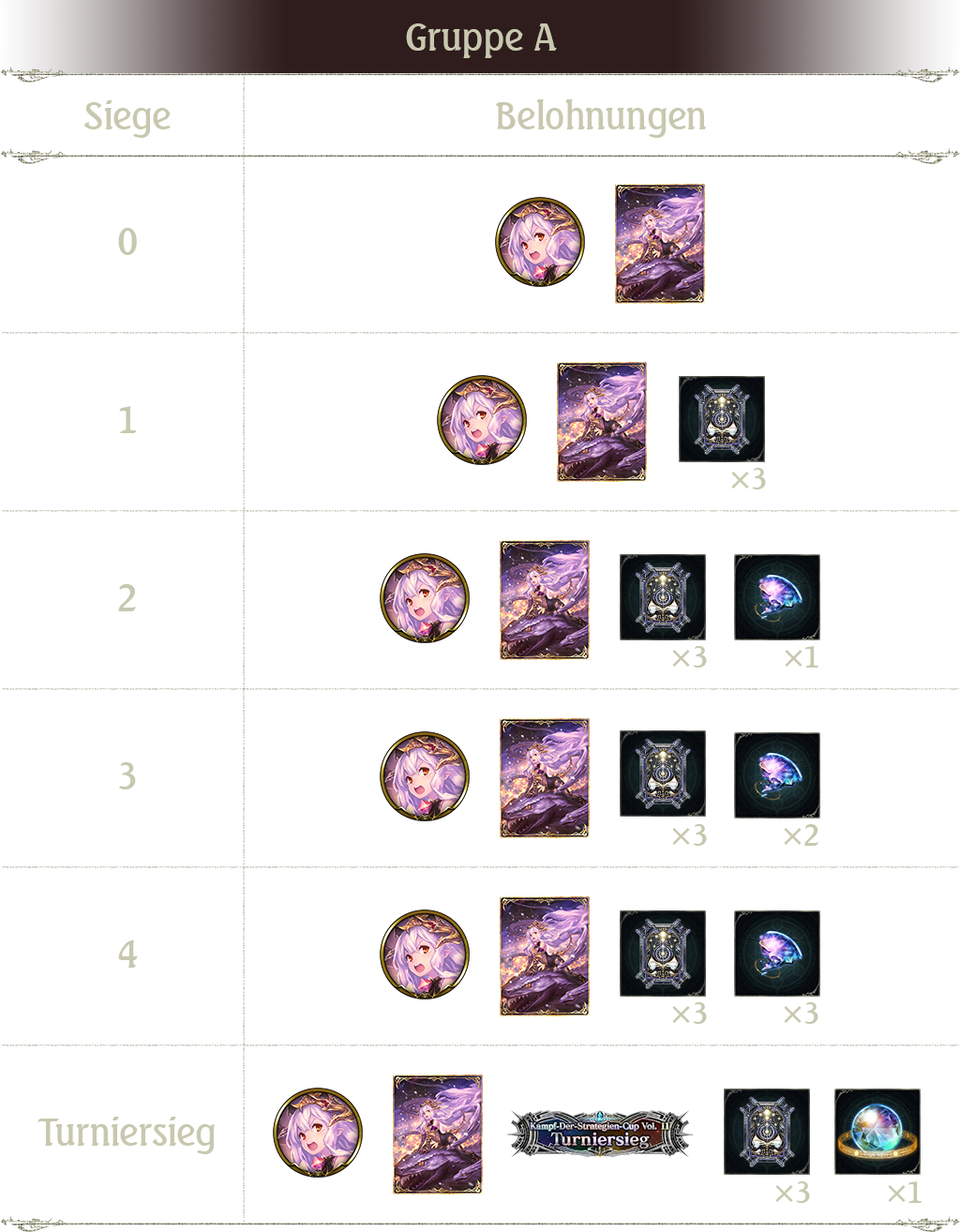 * Die Belohnungen in Gruppe A sind etwas exklusiver als in Gruppe B.