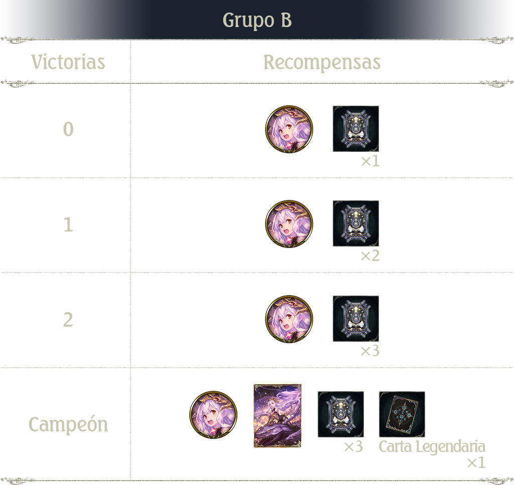 Consiste en luchar un número determinado de batallas. Dependiendo de la cantidad de victorias obtenidas avanzarás a uno de los grupos.