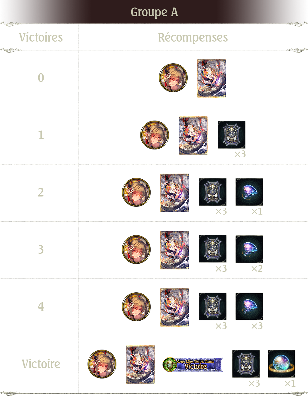 3 victoires : Ticket Rétro Alterné card pack x 3 et fragment de sphère x 2