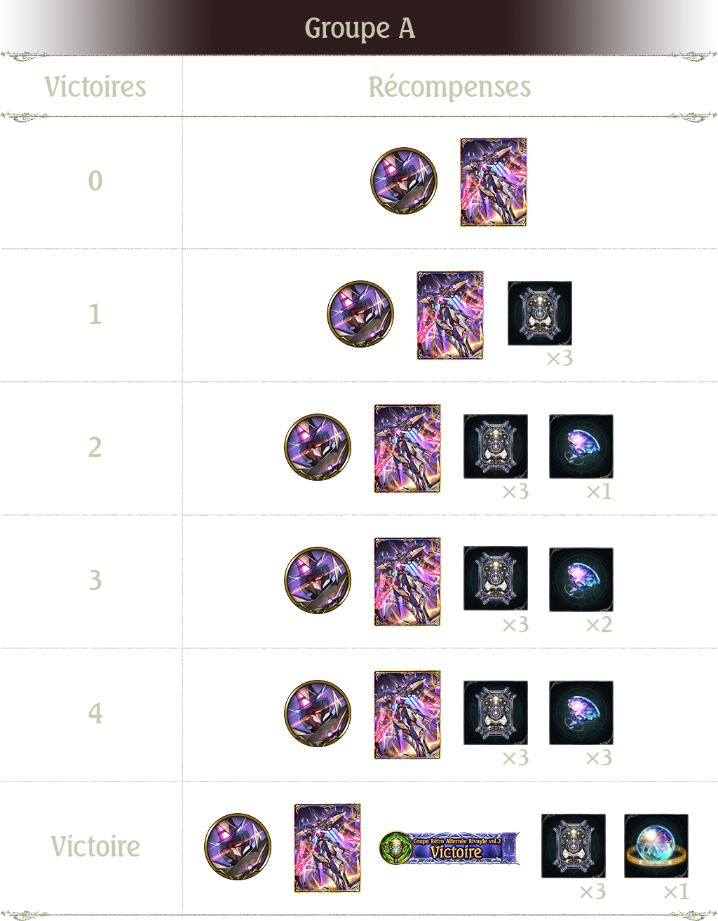 3 victoires : Ticket Rétro Alterné card pack x 3 et fragment de sphère x 2