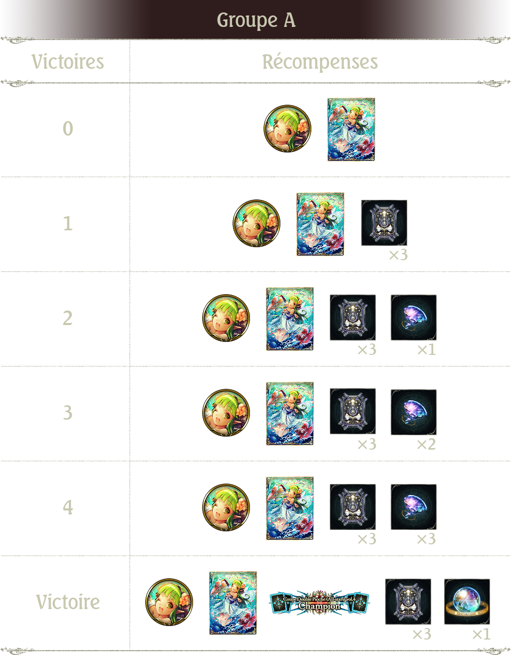 Les utilisateurs du Groupe A peuvent participer 5 fois par jour au maximum. Ils peuvent participer au tour final avec 4 victoires.