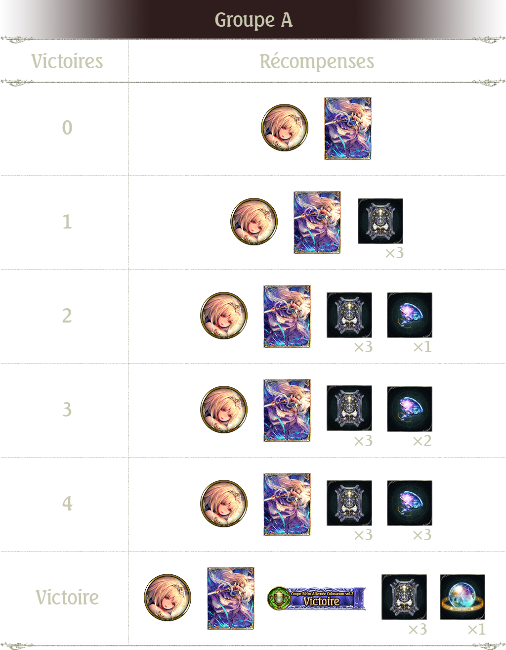 3 victoires : Ticket Rétro Alterné card pack x 3 et fragment de sphère x 2