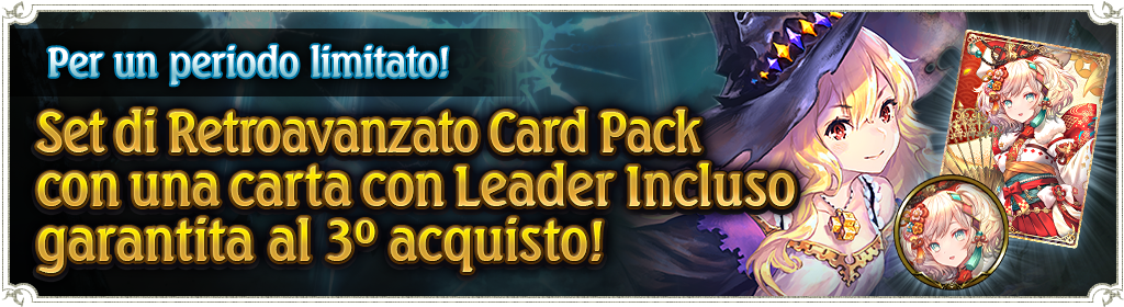 A partire dalle 3:00 (GMT+1) del 1º gennaio e fino alle 15:59 (GMT+1) dell’8 gennaio, nel Negozio sarà in vendita un Set di 10 Retroavanzato Card Pack, disponibile per un massimo di 3 volte. L'ultima carta del decimo pacchetto del primo e del secondo set acquistato sarà una carta con Leader Incluso o una Leggendaria appartenenti al formato Retroavanzato attuale! L'ultima carta del decimo pacchetto del terzo set acquistato sarà sicuramente una carta con Leader Incluso.