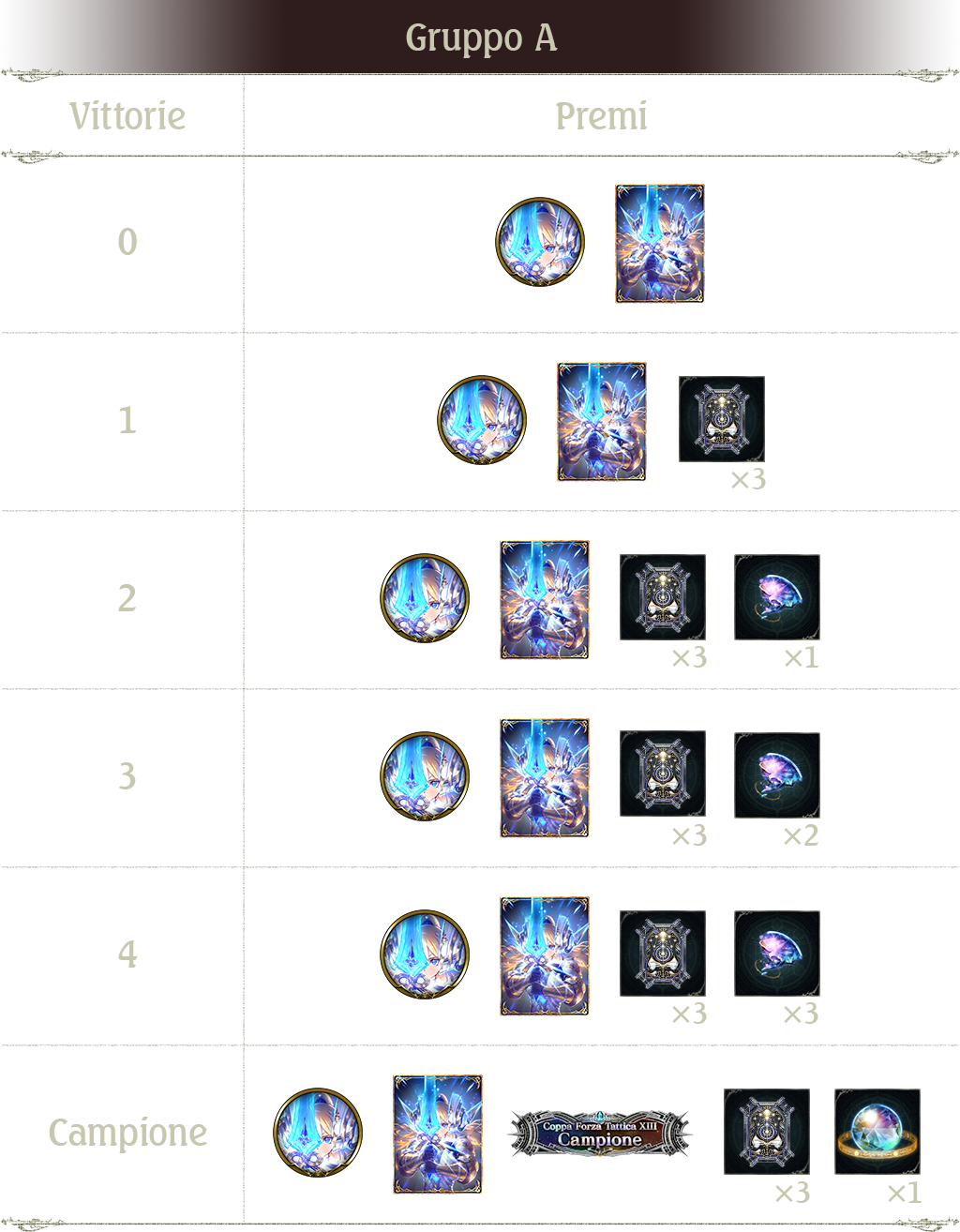 - Guida alle Ricompense delle Finali Gruppo A: