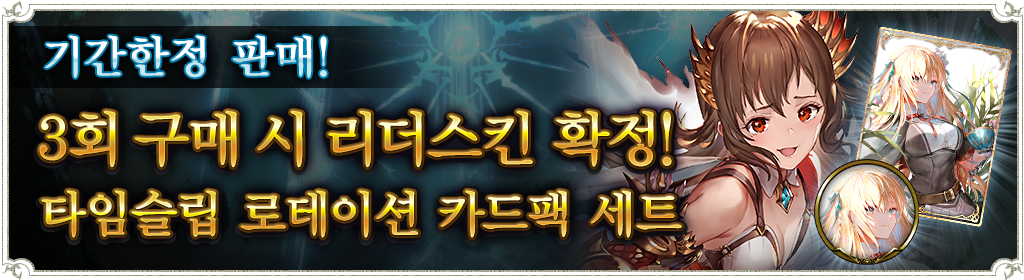 3회 구매 시 리더스킨 확정! 타임슬립 로테이션 카드팩 세트 판매 안내