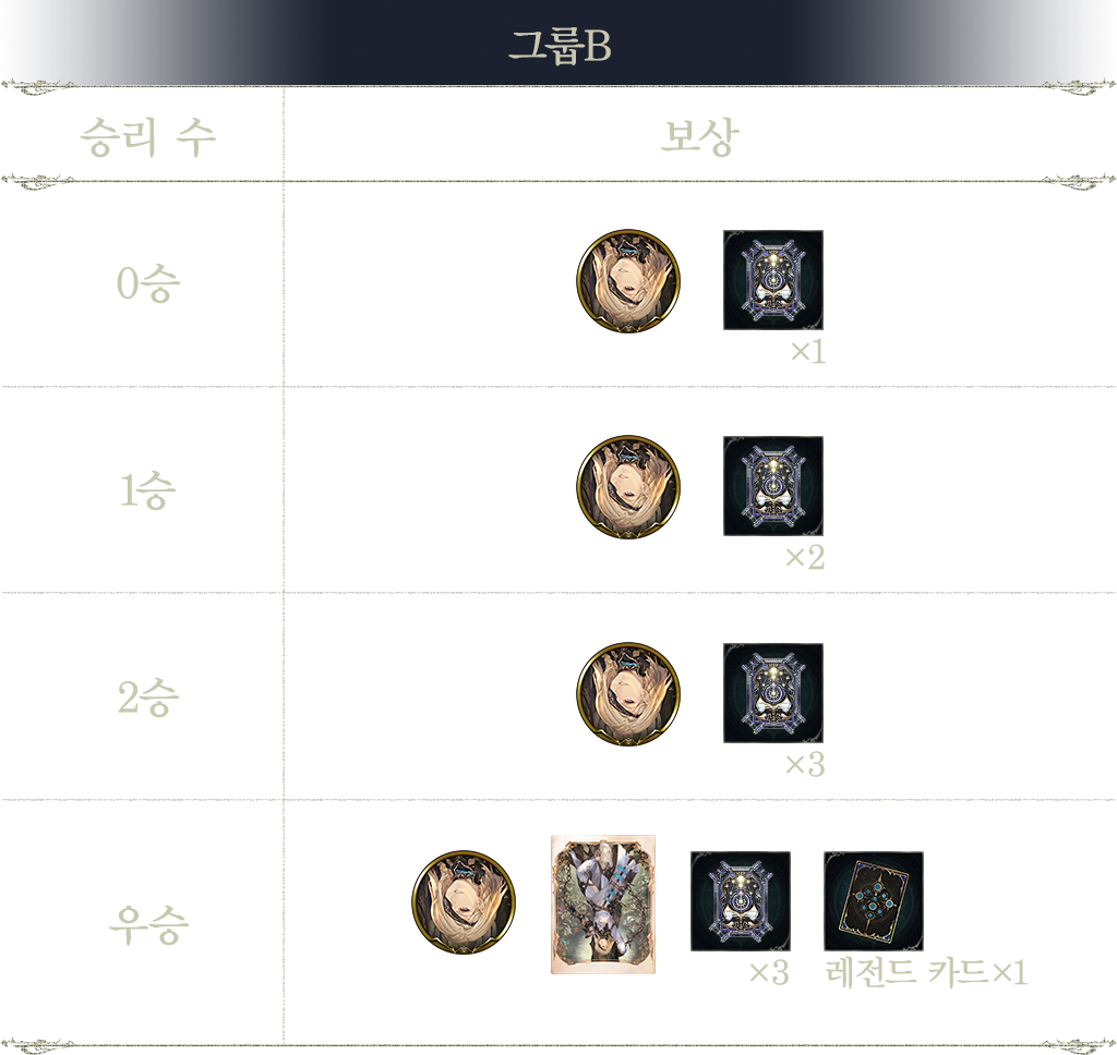※1승 이상일 경우, 카드팩 티켓 1장분 이상의 보상을 획득할 수 있습니다.