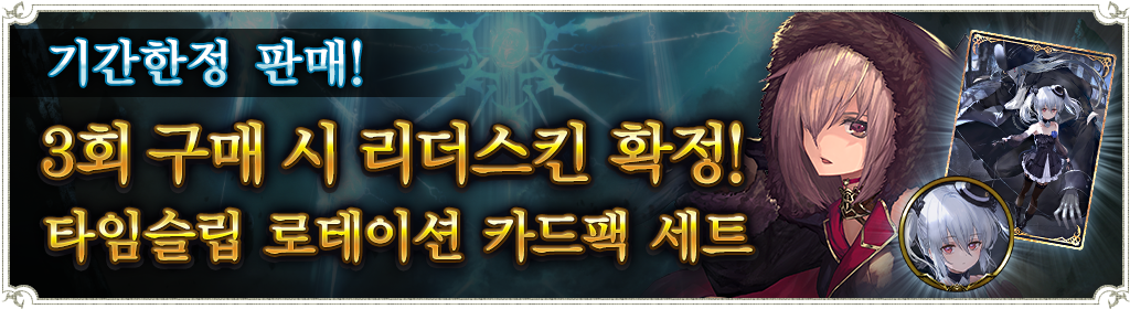 3회 구매 시 리더스킨 확정! 타임슬립 로테이션 카드팩 세트 판매 안내