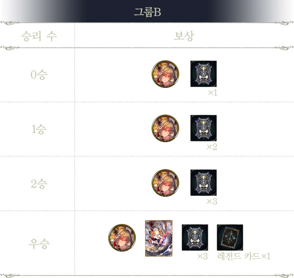 ※1승 이상일 경우, 카드팩 티켓 1장분 이상의 보상을 획득할 수 있습니다.