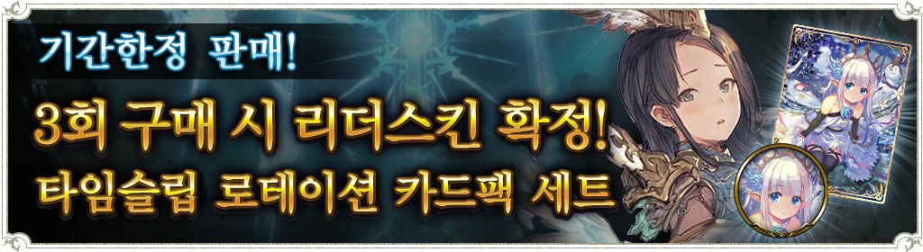 3회 구매 시 리더스킨 확정! 타임슬립 로테이션 카드팩 세트 판매 안내