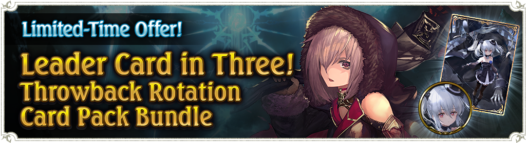 Throwback Rotation 10-pack bundles will be available in the Shop for 1000 crystals each from 7:00 p.m., October 31, until 7:00 a.m., November 8 (PT). The tenth pack of the 1st and 2nd bundle has a guaranteed legendary card or leader card from the current Throwback Rotation. The tenth pack of the 3rd bundle has a guaranteed leader card. This bundle has the added feature for you to exclude leader cards you already own!