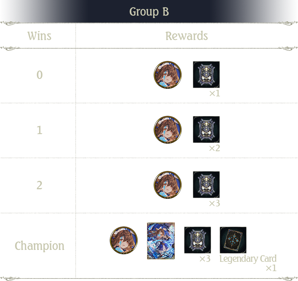 Group B players will also receive the following rewards based on the number of matches won: