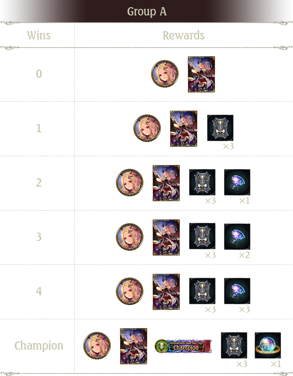 Group A players will also receive the following rewards based on the number of matches won: